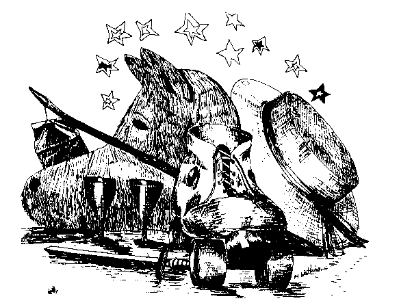 The fairies. What a wonderful idea to have them all move around on roller skates! They glided around the floor like the light airy beings Shakespeare surely had in mind. Clever lighting and gorgeously dress and make-up completed the illusion. Fortunately too, the air of mystery was preserved by the speaking of the lines. Bridget Fox (Titania) and Jeremy Reynolds (Oberon) were excellent in this respect (and in their general movement and postures). They were given first class support by the remainder of the fairies. We could not leave this section without a mention of the performance of Ian Kennett as Puck. He spoke well and his movement and facial expression whether in or out of the c